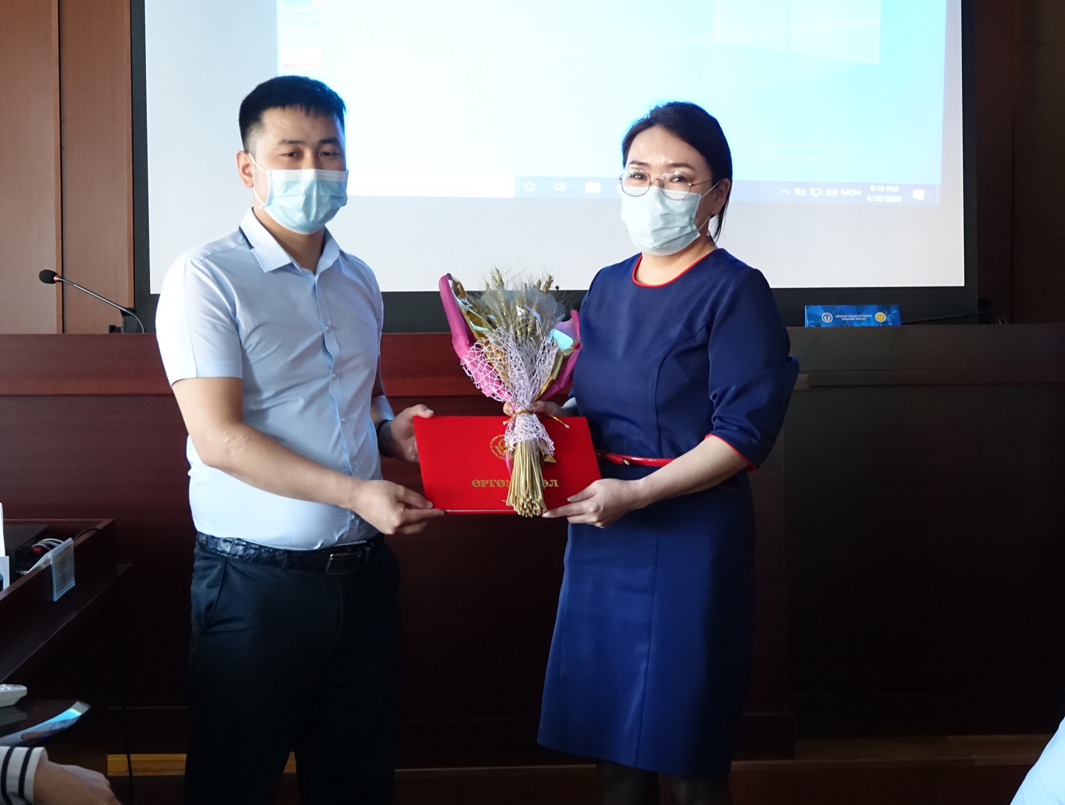 Монголын шүүхийн захиргааны ажилтны холбооноос Шүүхийн захиргааны байгууллагад үр бүтээлтэй ажиллаж, шударга ёсны үйлчилгээг иргэдэд хүртээмжтэй хүргэх, шүүн таслах ажлыг хэвийн явуулах нөхцөлийг хангах, шүүхэд итгэх иргэдийн итгэлийг бэхжүүлэх үйлсэд хамт олноо манлайлан ажилласныг нь үнэлж Өмнөговь аймаг дахь Захиргааны хэргийн анхан шатны шүүхийн шүүгчийн туслах Эрдэнэбатын Ууганчимэгийг “2019 ОНЫ ШҮҮХИЙН ЗАХИРГААНЫ ТЭРГҮҮНИЙ АЖИЛТАН”-аар шалгаруулж, “Хүндэт өргөмжлөл”, үнэ бүхий зүйлээр шагнасныг 2020.04.30-ны өдөр Өмнөговь аймаг дахь шүүхийн Тамгын газрын даргын албан үүргийг түр орлон гүйцэтгэгч Б.Мөнхтүвшин гардуулан өгч баяр хүргэлээ.