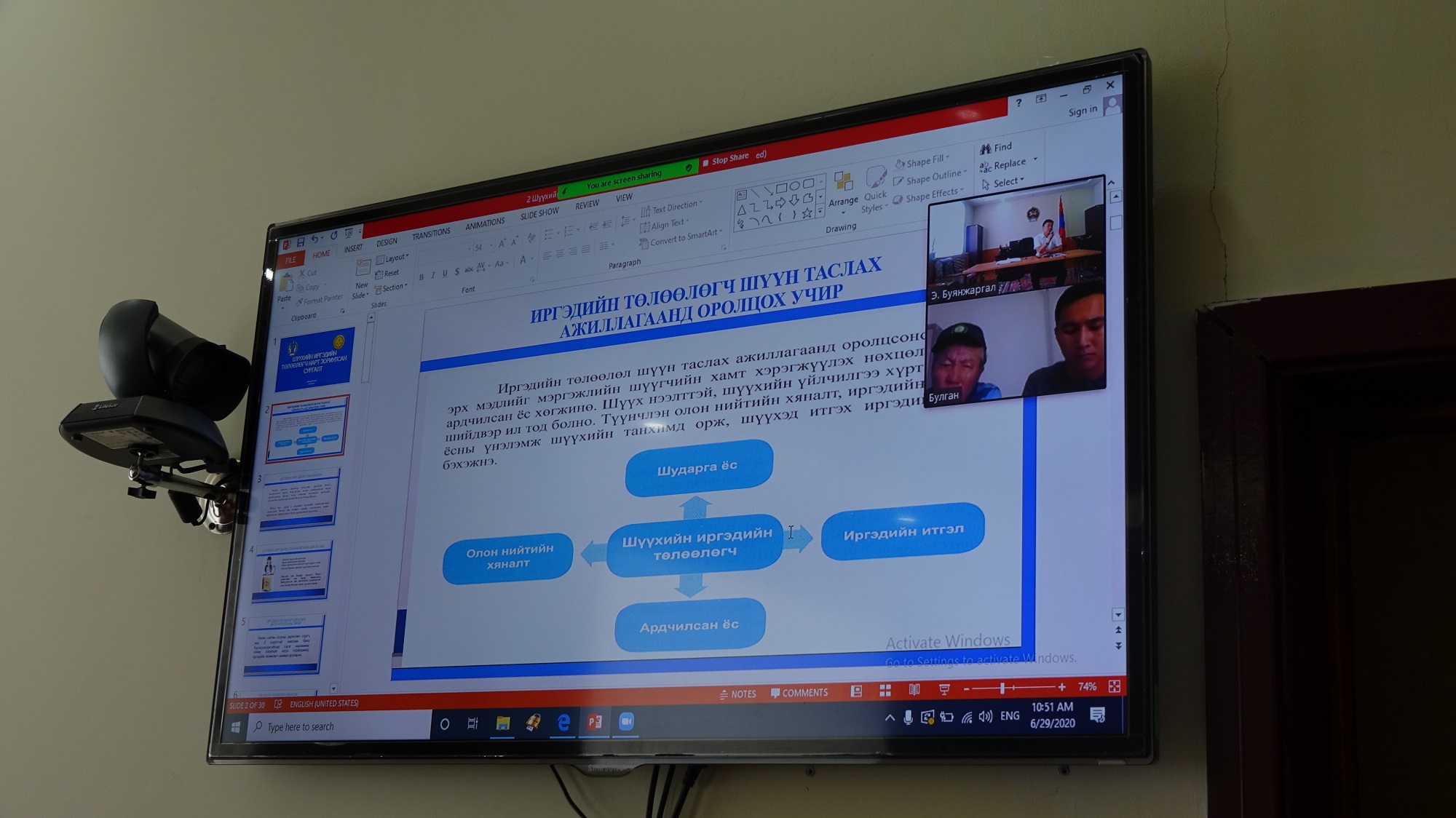 Шүүхийн Тамгын газраас иргэдийн төлөөлөгч нарын хууль эрх зүйн мэдлэгийг дээшлүүлэх, шүүх хуралдаанд иргэдийн төлөөлөгчөөр оролцох ач холбогдлыг тэдэнд ойлгуулах зорилгоор 2020 онд Баяндалай, Булган, Даланзадгад, Мандал-Овоо сумаас шүүх хуралдаанд оролцох иргэдийн төлөөлөгч нарт зориулсан сургалтыг 2020 оны 06 дугаар сарын 17-ны өдрөөс 30-ны өдрүүдэд танхимын болон онлайн хэлбэрээр тус тус зохион байгуулав.