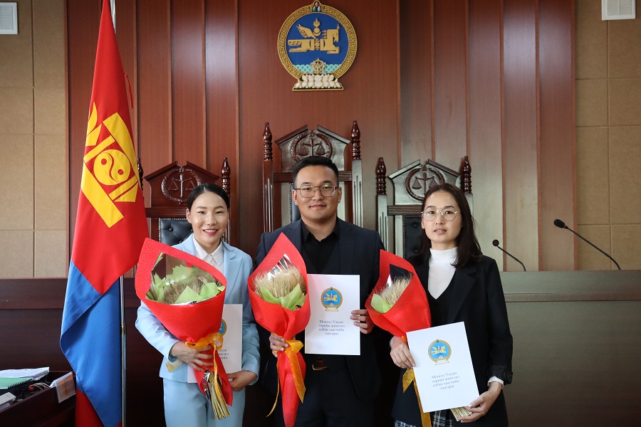 Түүнчлэн Баянхонгор аймаг дахь шүүхийн тамгын газраас В.Ундрах-Оргил, Булган аймаг дахь шүүхийн тамгын газраас Э.Уянга, Дорнод аймаг дахь шүүхийн тамгын газраас Г.Оюунтуяа, Завхан аймаг дахь шүүхийн тамгын газраас Б.Долгорсүрэн, Орхон аймаг дахь шүүхийн тамгын газраас Э.Булгантамир, Өмнөговь аймаг дахь шүүхийн тамгын газраас П.Цэнднасан, Ж.Мухлай, И.Бадамцэцэг, Сүхбаатар аймаг дахь шүүхийн тамгын газраас Э.Энхсаруул, С.Бат-Очир, Сэлэнгэ аймгийн Мандал сум дахь сум дундын шүүхийн тамгын газраас С.Төртулах, Увс аймаг дахь шүүхийн тамгын газраас Б.Сарантуяа, Н.Удвал, Т.Жаргалсайхан нарын шүүхийн захиргааны ажилтнууд тус тус онлайнаар холбогдож, төрийн жинхэнэ албан хаагчийн тангараг өргөлөө.