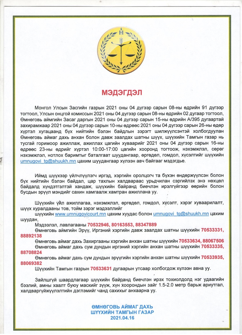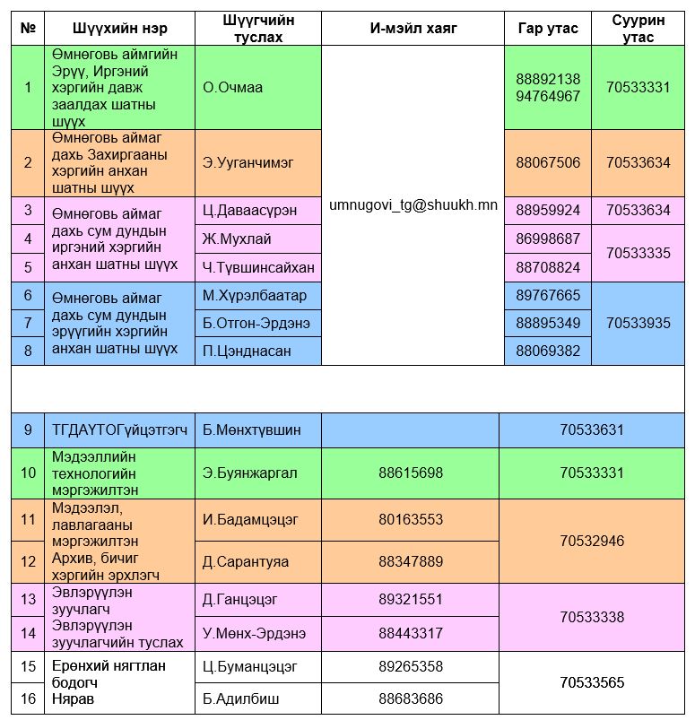 Утас: 70532184, 70532946 | Цахим шуудан: umnugovi_tg@shuukh.mn | Сайтын бүтэц