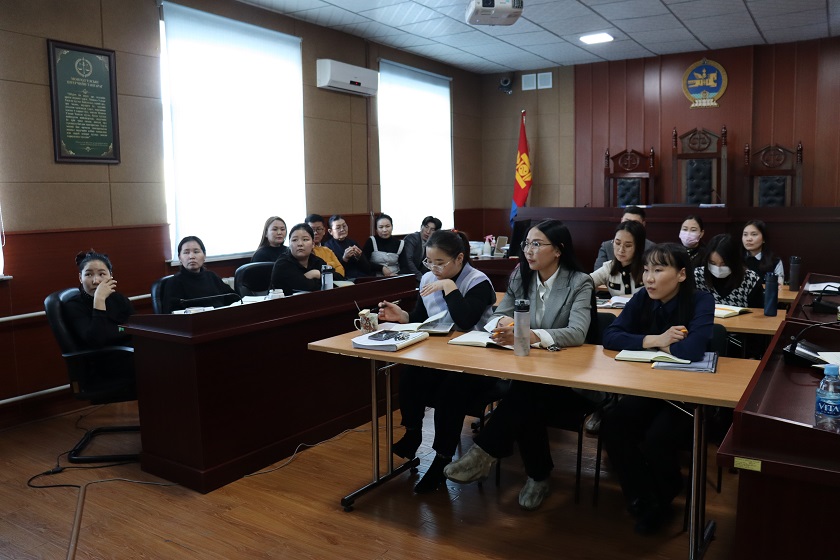 Сургалтыг Шүүхийн Ерөнхий Зөвлөлийн Хэргийн хөдөлгөөний удирдлагын хэлтсийн референт Б.Батцэцэг, Ч.Ханддулам, илтгэгч, сургагч багш П.Дөлгөөн нар удирдан явуулж, сургалтад хамрагдсан шүүгч, ажилтнуудтай харилцан ярилцлаа.