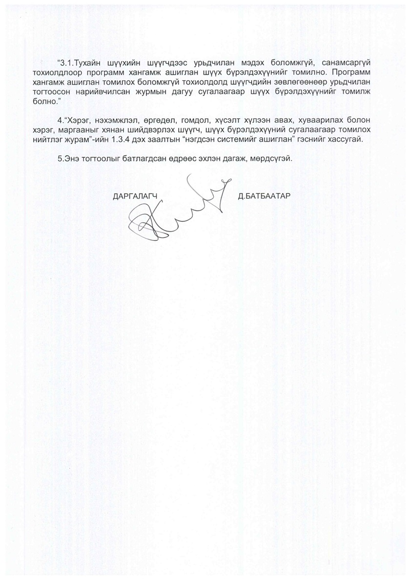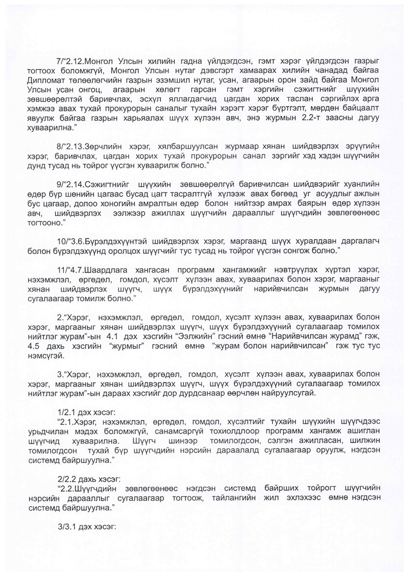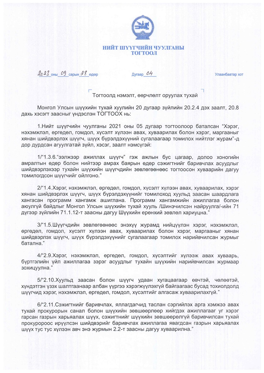 НИЙТ ШҮҮГЧИЙН ЧУУЛГАНЫ ТОГТООЛД НЭМЭЛТ, ӨӨРЛӨЛТ ОРУУЛАХ ТУХАЙ