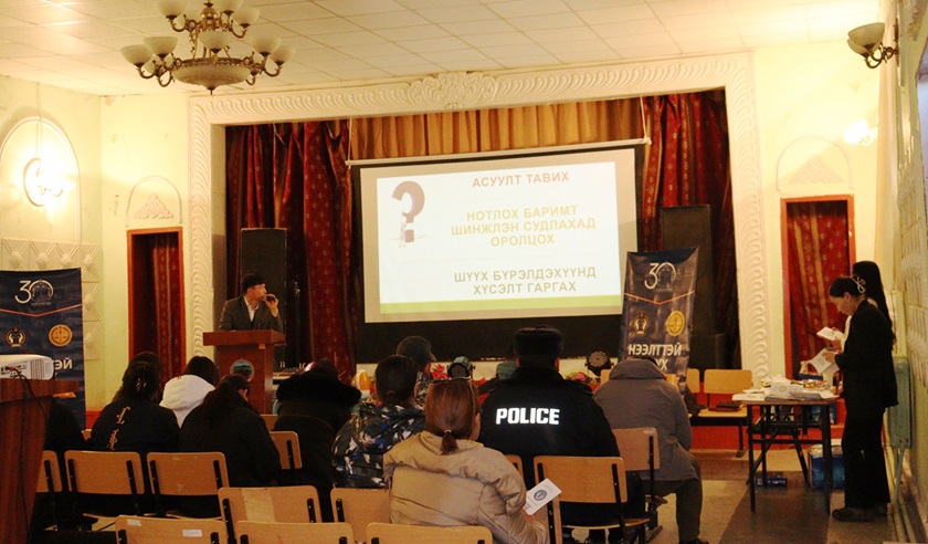 Сургалт, мэдээллийг хөтөлбөрийн дагуу шүүхийн шүүгчийн туслах И.Бадамцэцэг, Г.Бямбажав, Э.Баярмагнай, эвлэрүүлэн зуучлалын туслах ажилтан М.Шинэцэцэг нар удирдан явуулж, сургалтад хамрагдсан иргэдийн сонирхсон асуултад хариулт өгч, бэлтгэсэн гарын авлага, зурагт танилцуулга, нугалбар хуудсаар ханган ажиллав.