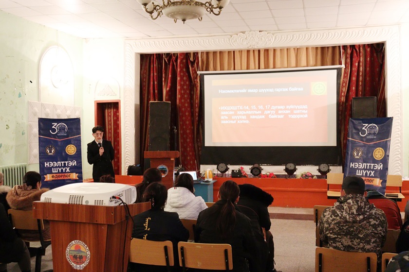 Шүүхийн Тамгын газраас аймгийн Гэмт хэргээс урьдчилан сэргийлэх ажлыг зохицуулах салбар зөвлөлтэй хамтран шүүхийн ил тод нээлттэй байдлыг ханган олон нийтэд шүүхийн үйлчилгээг ойртуулах, иргэдийн хууль эрх зүйн мэдлэгийг дээшлүүлэх, гэмт, хэрэг зөрчлөөс урьдчилан сэргийлэх, санал хүсэлт, өргөдөл гомдол, нэхэмжлэл хүлээн авах, эвлэрүүлэн зуучлах ажиллагааг газар дээр нь шийдвэрлэх болон харьяа сумуудаас сонгогдсон шүүхийн иргэдийн төлөөлөгч нарт сургалт, мэдээлэл хийх зорилгоор 2023 оны 11 дүгээр сарын 27-ны өдөр Өмнөговь аймгийн Мандал-Овоо суманд ажиллалаа.