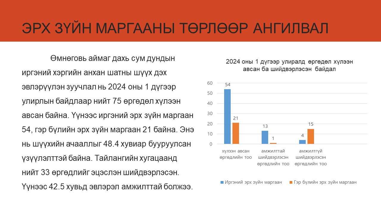ШҮҮХИЙН ЭВЛЭРҮҮЛЭН ЗУУЧЛАХ АЖИЛЛАГААНЫ ҮР ДҮН
