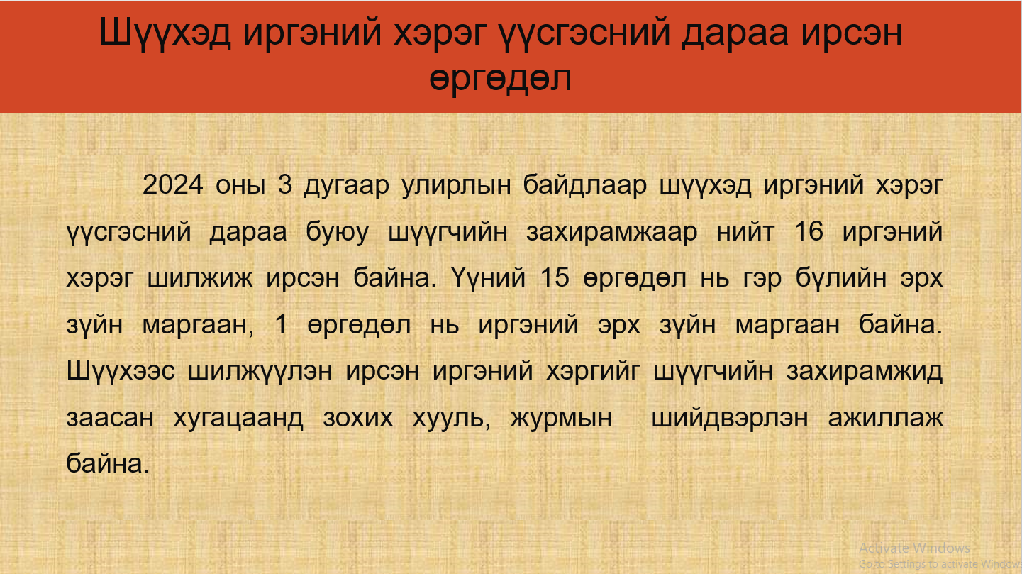 Шүүх таны нэхэмжлэл, хүсэлтийг хүлээн аваад хийгдэх ажиллагаанууд
