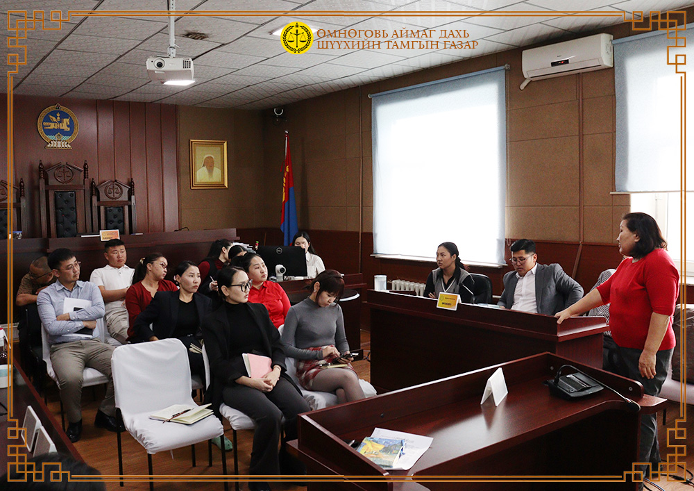 Сургалтыг ахмад шүүгч Н.Насанжаргал удирдан явуулж, сургалтад хамрагдсан шүүхийн захиргааны ажилтнуудтай харилцан ярилцлаа.